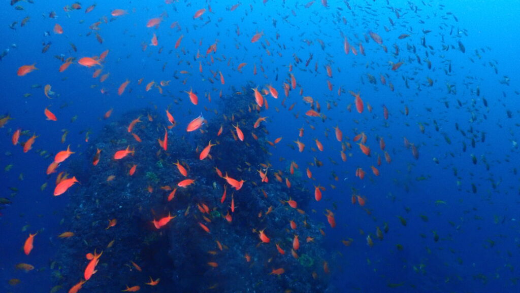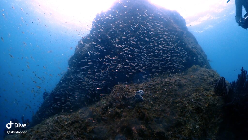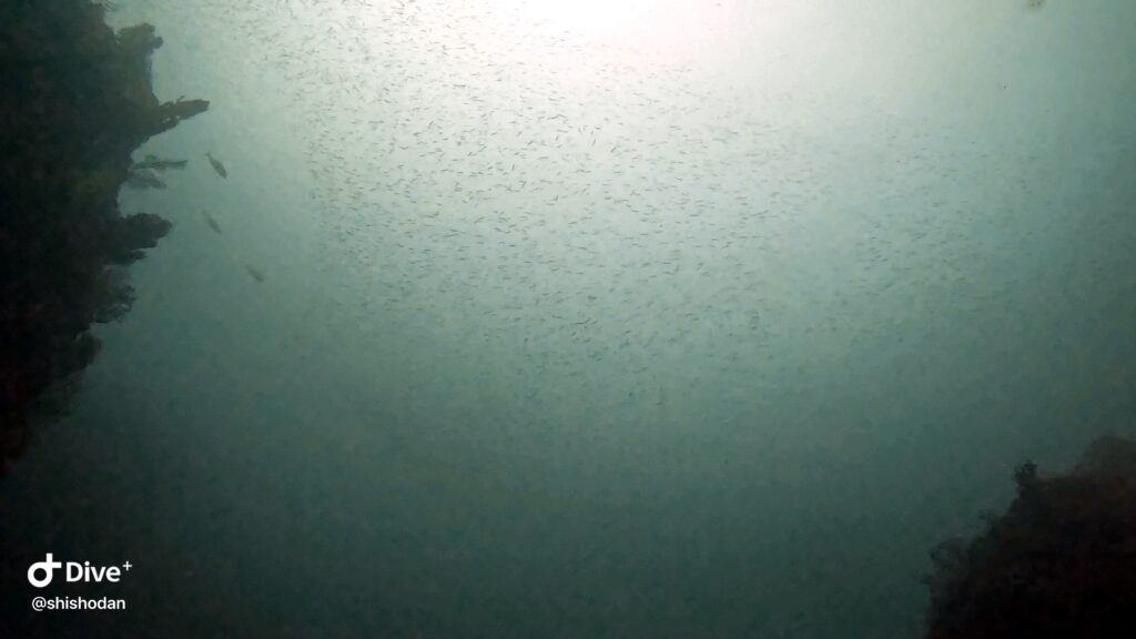 泳いでると上ではキビナゴがずっとわさーっと居ます( ‘ω’ 三 ‘ω’ )