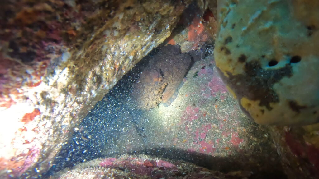 タコがオトヒメエビを捉えた瞬間も撮れました