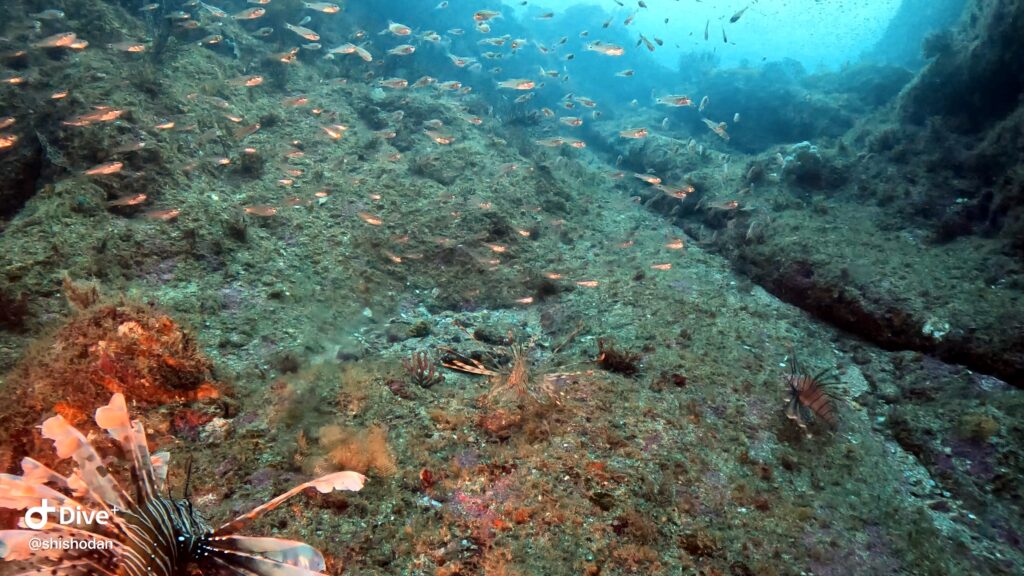 東の根にはネンブツダイが沢山いて、それを狙うミノカサゴがわらわらと(;´∀`)