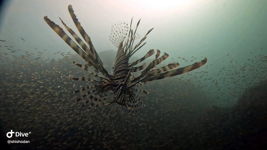 ネンブツダイの群れの中にいたハナミノカサゴ近寄ってきてくれました(*´艸`*)
