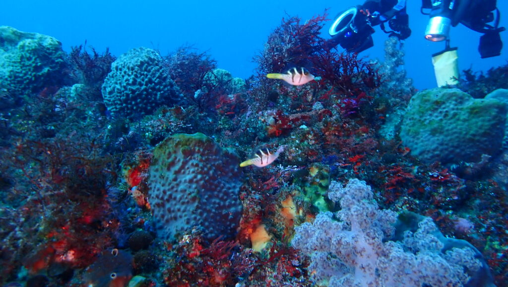 隣のカサゴ根ではシマキンチャクフグ